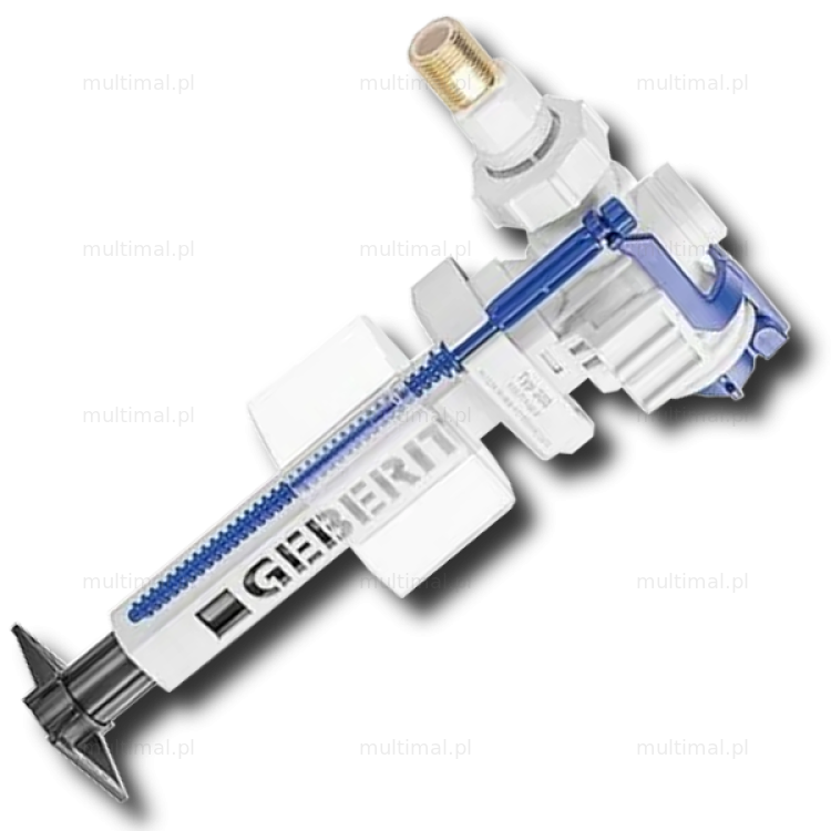 Geberit Zawór napełniający Unifill typ 383 do spłuczek natynkowych i podtynkowych nr kat. 240.700.00.5 to nowy model zaworu napełniającego Geberit Unifii zapewniający szybkie i ciche napełnianie zbiornika. Dzięki precyzyjnej konstrukcji, zawór ten jest prosty w montażu i idealny do napraw oraz modernizacji instalacji sanitarnych. Zawór napełniający Geberit Unifill Typ 383 to zawór uniwersalny, posiada króciec mosiężny 3/8 cala, przyłącze wody z boku. Przeznaczony do spłuczki podtynkowej Geberit Delta - DUOFIX Basic UP100, spłuczki podtynkowej Geberit Twinline - UNIFIX, KOMBIFIX UP130, spłuczki podtynkowej Geberit Kappa - UP120, UP200, ARTLINE, Omega, spłuczki podtynkowej Geberit Sigma 12cm - DUOFIX UP300, UP320, Sigma 8cm - UP720 i spłuczek natynkowych Geberit. Zastępuje zawór napełniający Geberit Unifill typ 380 nr kat. 240.700.00.1, który został wycofany z produkcji i zawór pływakowy Geberit nr kat. 215.419.00.1, który jest zamontowany w starych spłuczkach podtynkowych Geberit Twinline, Kiwa. Zawór posiada możliwość regulacji wysokości napełnienia. Optymalne spłukiwanie uzyskamy ustawiając w połowie litery R w napisie Geberit. Mechanizm pasuje też do spłuczek WC innych producentów z zasilaniem bocznym na gwint 3/8 cala. Do zaworu napełniającego Unifill dołączona jest instrukcja montażu. W komplecie z zaworem zamykającym adapter do nypla zaworu napełniającego typu 350 i śrubunek z uszczelnieniem stożkowym. Poziom hałasu zgodny z Grupą I armatury (DIN4109).